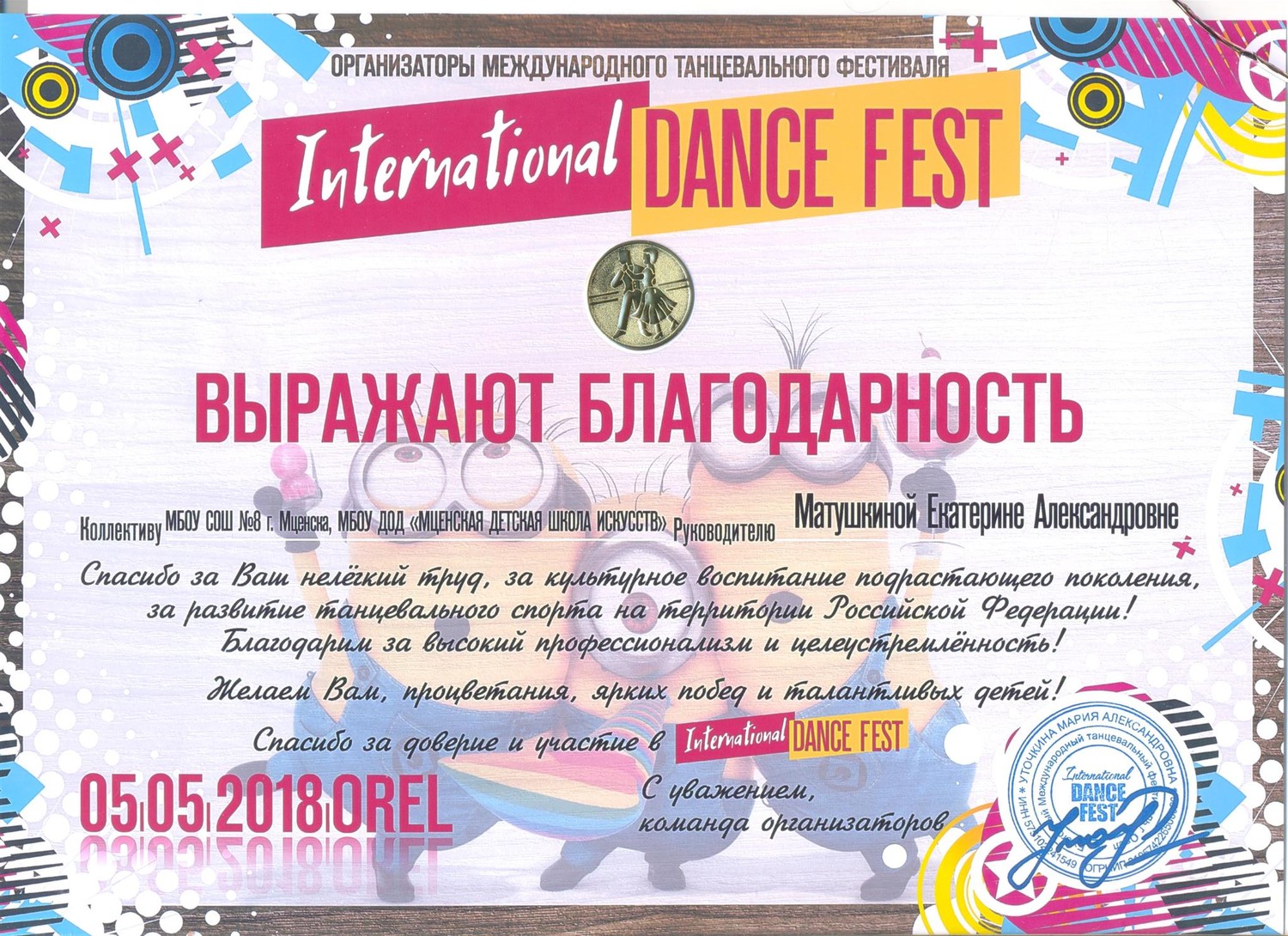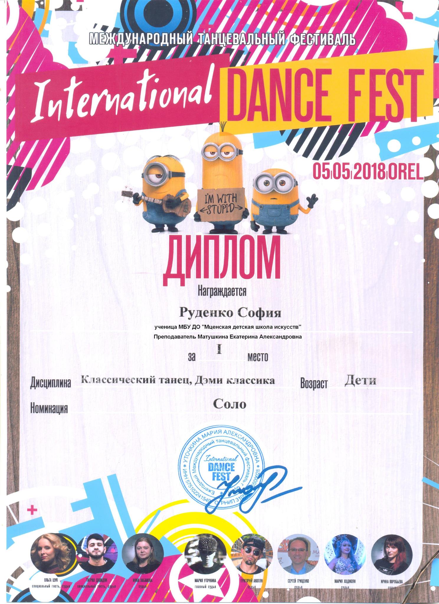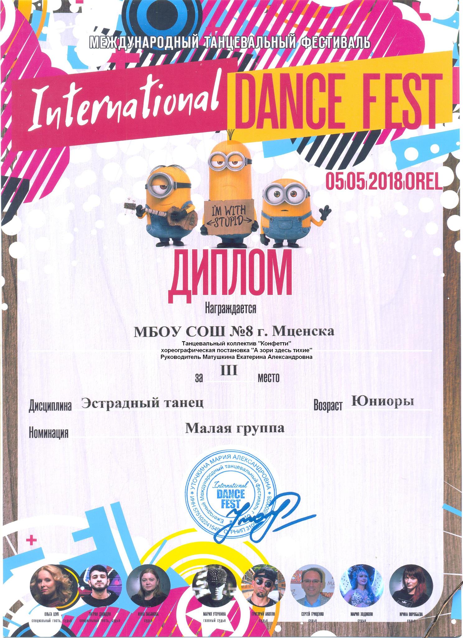 INTERNATIONAL DANCE FEST стали-Миньоны!Миньоны - добрые, жизнерадостные персонажи, несущие позитив, смех и радость. А это полное соответствие тех эмоций, которые участники и гости получают на фестивалях! На этом фестивале присутствовали участники разных городов России: Брянск, Белгород, Курск, Липецк, Орел, Плавск, а также профессиональный состав жюри. И наши