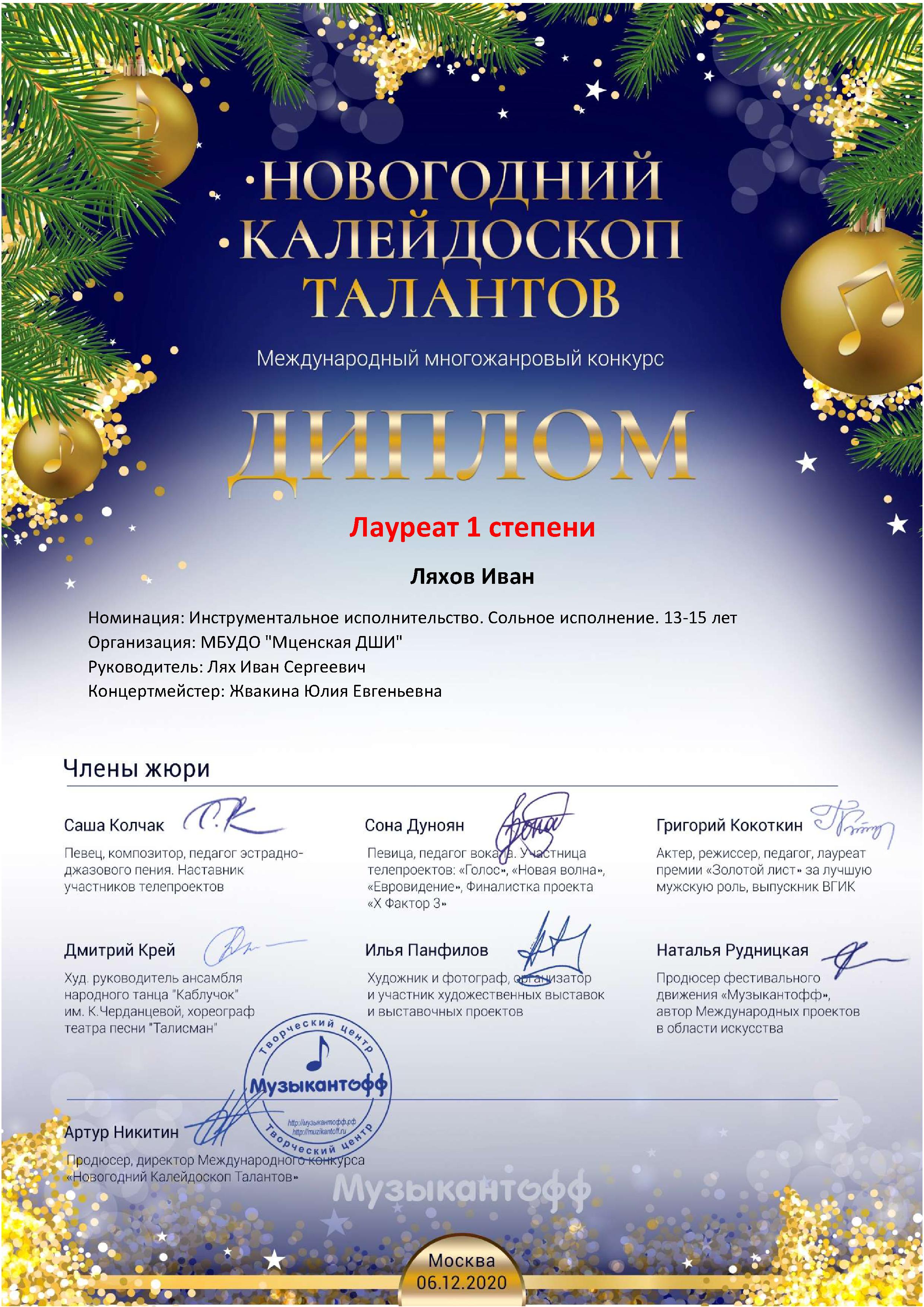 Иван лауреат 1 степени, Перловская Вера лауреат 2 степени, Сухочев Кирилл лауреат 1 степени, это обучающиеся Лях Ивана Сергеевича. Эстрадное