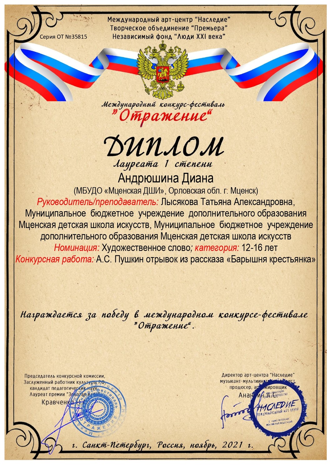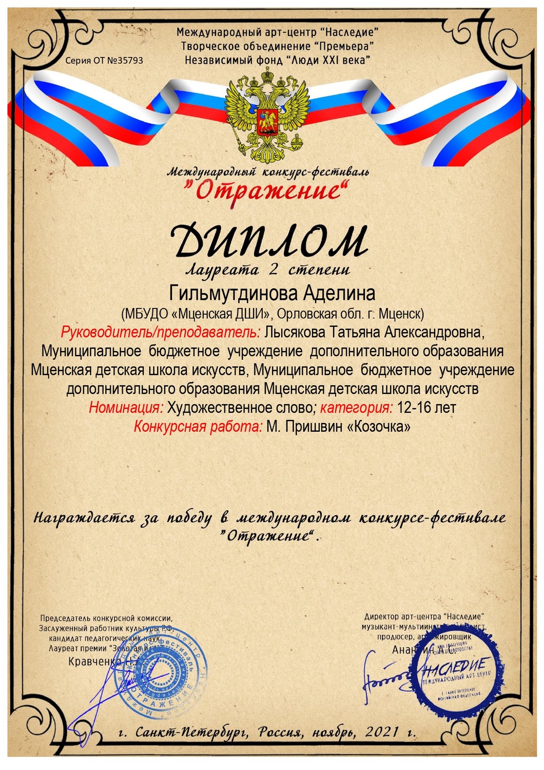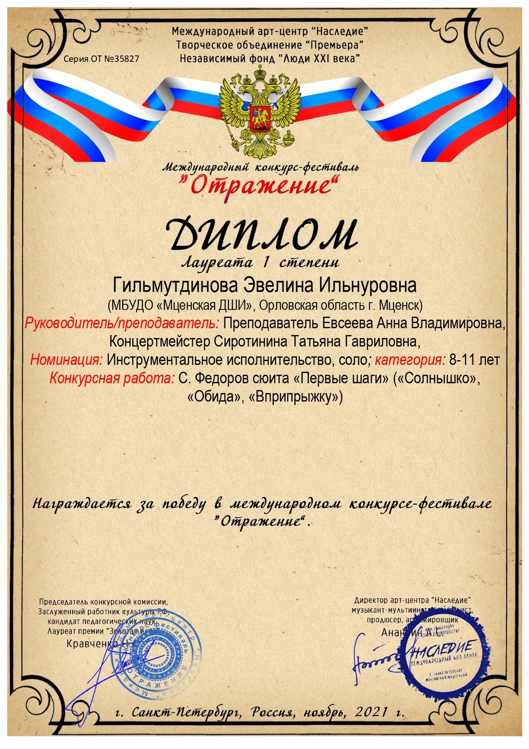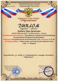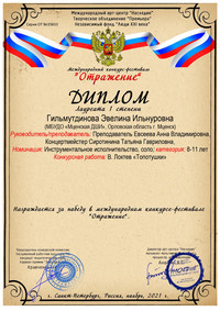 В ноябре обучающиеся Мценской ДШИ одержали победу в Международном фестивале-конкурсе искусств «Отражение» в г. Санкт-Петербург.