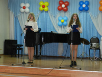 Свои музыкальные поздравления всем присутствующим подарили: Евсеева Анна Владимировна и Поздерина Дарья (преподаватель Кубасова Л. В.), Носов Павел (преподаватель Комарова А.Д.), Сычева Полина и Куткова Алена (преподаватель Заприкута Н.В.), Смирнов Ратмир (преподаватель Горохова Т.Ю.), Перловская Вера (преподаватель Лях И.С.), Ильинов Севастьян (преподаватель Жвакина Ю.Е.),трио аккордеонистов: Плаксин Иван, Рендова Валерия, Андреев Никита (преподаватели Анкудинов В.К., Верижников С.Н.). Довбило Иван (преподаватель Евсеева А.В.). Трищенко Анастасия (преподаватель Макарова О.В.)